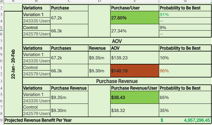 The business case was clear: estimated annual revenue benefit of +$13 million, driven by improved add-to-bag rates, expanded product range visibility online, and reduced customer disappointment at point of decision.